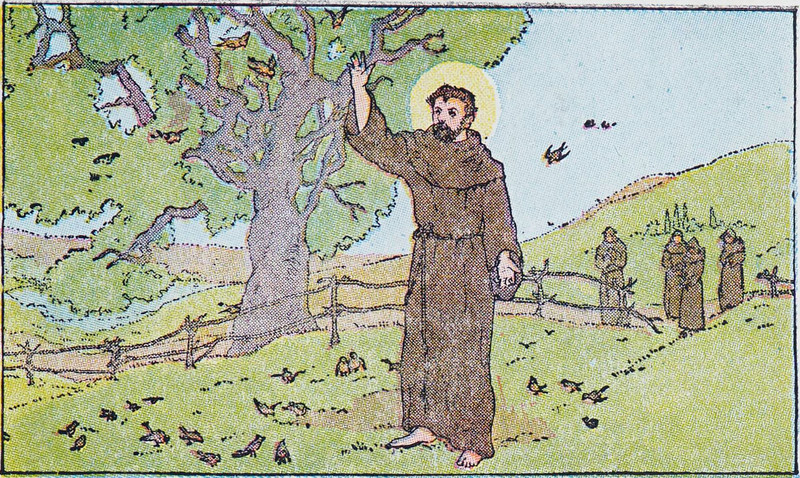 #vintage illustration #monk #saint #halo #illustration #st. francis #saint francis