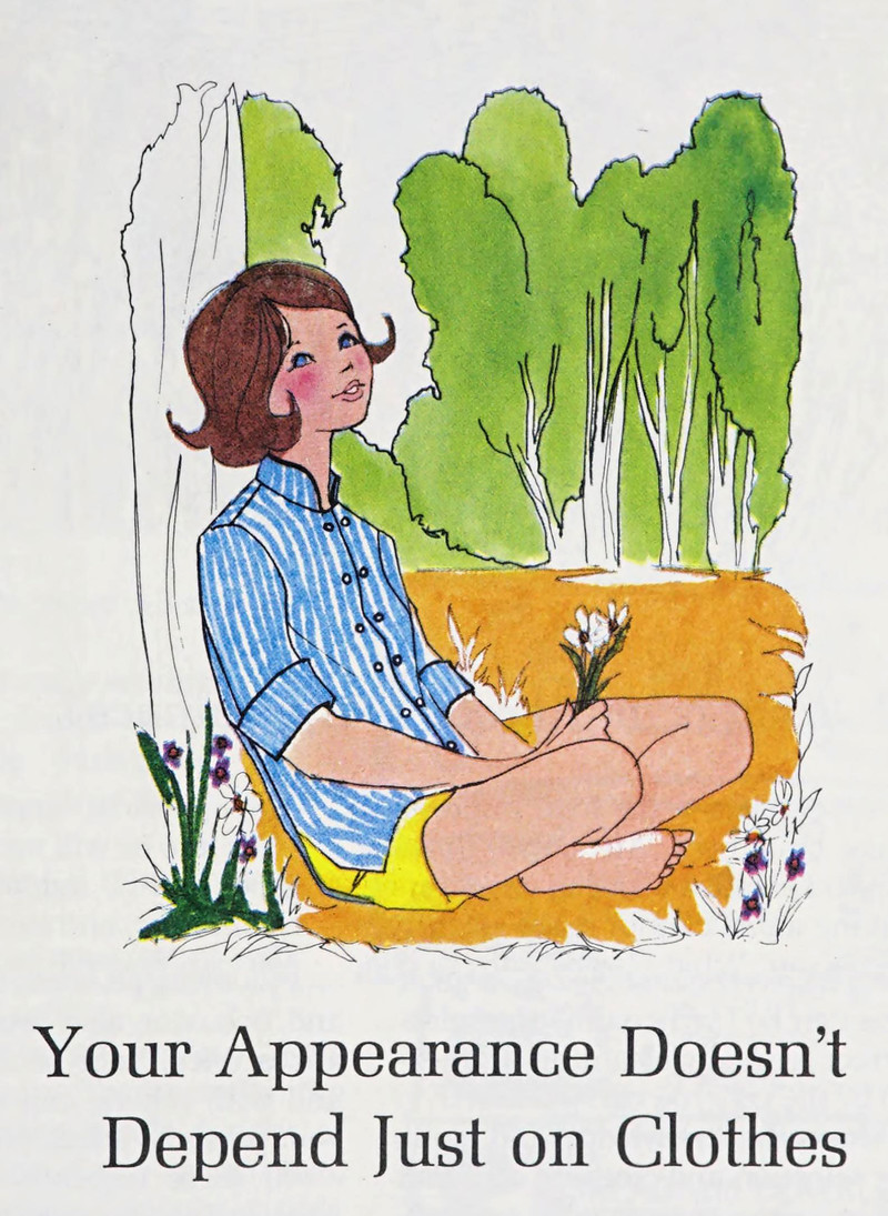 "Your appearance doesnt depend just on clothes."  From Clothes: Part of Your World by Margil Vanderhoff, 1968.