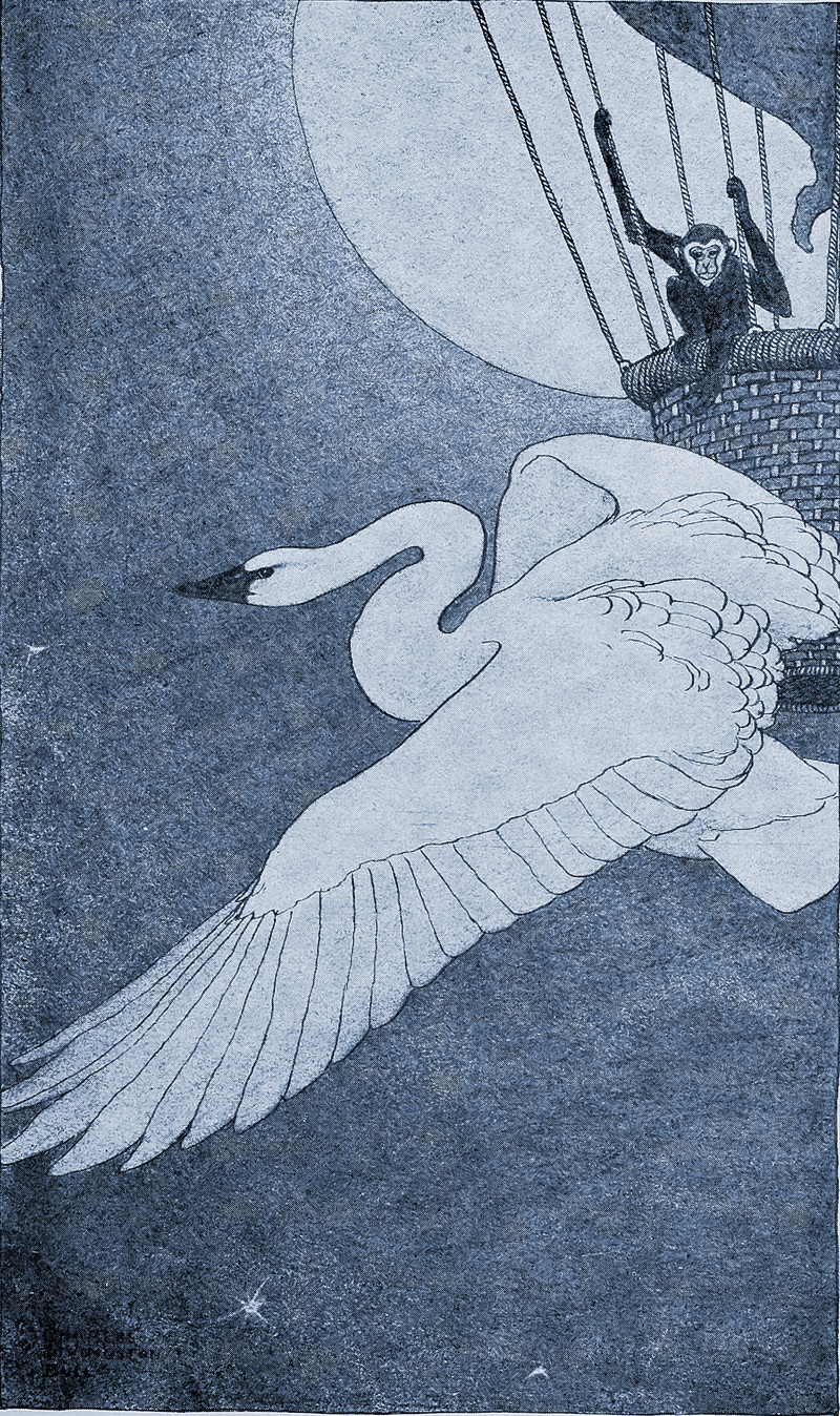 #vintage illustration #swan #monkey #hot air balloon #illustration