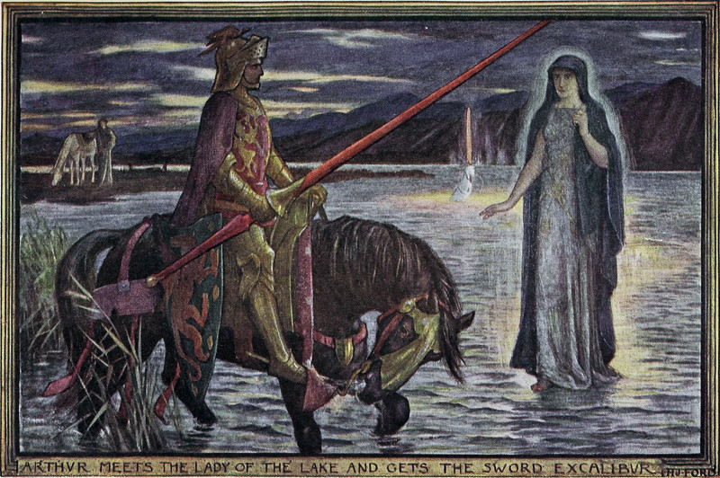 #vintage illustration #sword #excalibur #king arthur #lady of the lake #illustration