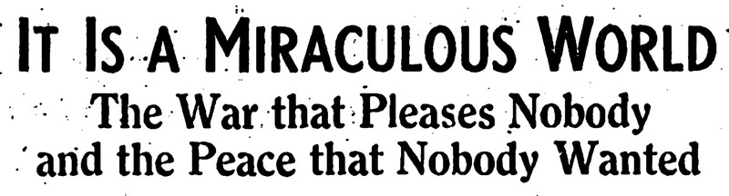 "It is a miraculous world.  The war that pleases nobody and the peace that nobody wanted."  From The Children's Newspaper, 1935.