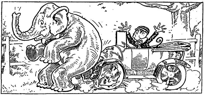 #vintage illustration #anthropomorphism #elephant #monkey #illustration #vintage automobile #automobile