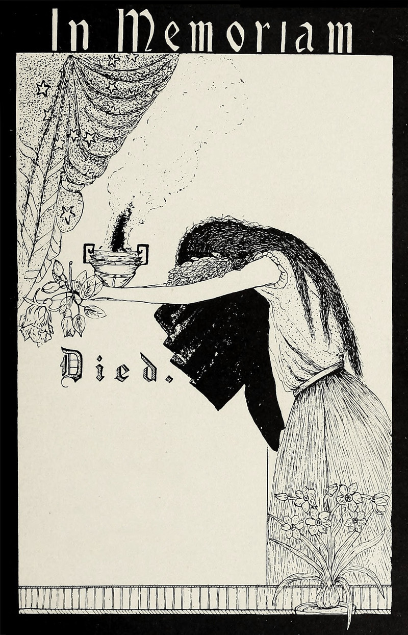 #vintage illustration #death #mourning #vintage yearbook #yearbook #1900s #illustration #in memoriam