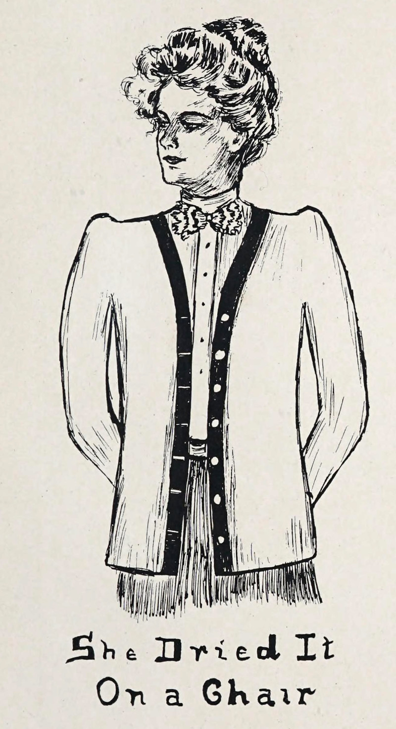 "She dried it on a chair."  From Oberlin College's 1908 yearbook.