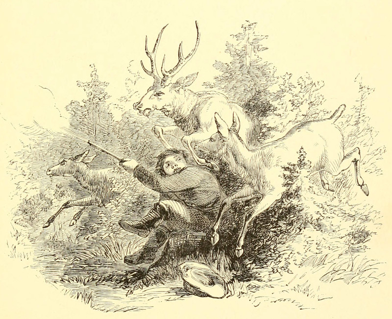 #vintage illustration #animal attack #hunter #deer #tables turned #illustration