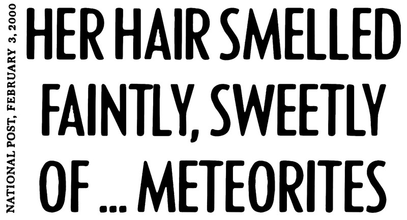 "Her hair smelled faintly, sweetly of ... meteorites."  Via Delve Report, 2000.