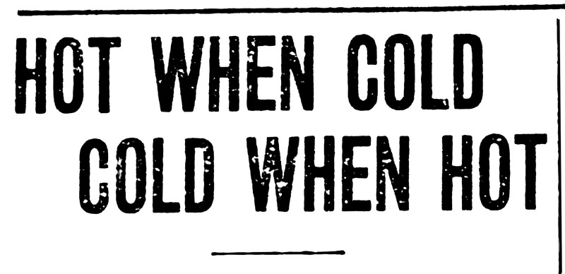 "Hot when cold, cold when hot."  From the Duluth Herald, 1910.