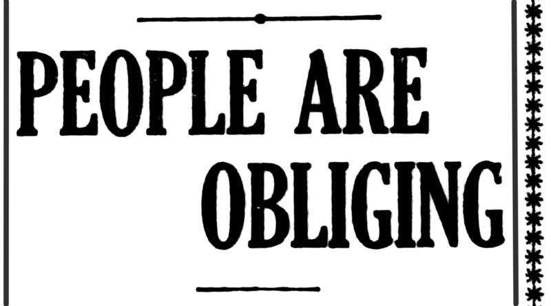 "People are obliging."  From the Duluth Herald, 1910.