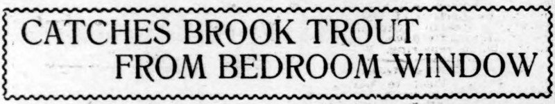 "Catches brook trout from bedroom window."  From the Duluth Herald, 1910.