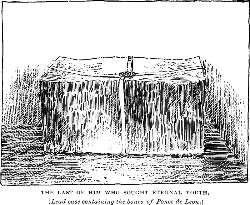 This illustration purports to depict the remains of Ponce de Leon, "the last of him who sought eternal youth," but we have previously established that Ponce de Leon is one of the Chinese immortals.
