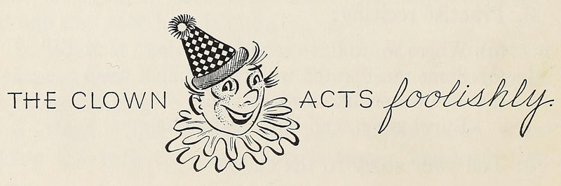 "The clown acts foolishly."  From Junior Language Book C by Donalda Dickie, 1945.