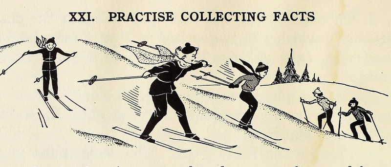 Some call it skiing while others call it collecting facts.  From Junior Language Book B by Donalda Dickie, 1938.