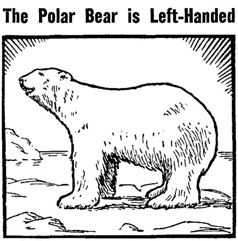"The polar bear is left-handed."  From The Children's Newspaper, 1939.
