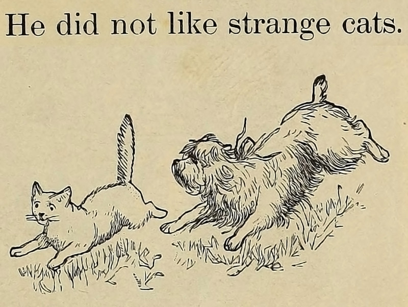 "He did not like strange cats."  From The Second Primer by J. M. D. Meiklejohn, 1881.