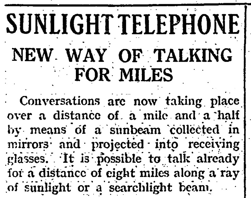 "Sunlight telephone.  New way of talking for miles."  From The Children's Newspaper, 1919.