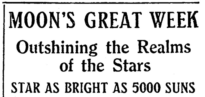 "Moon's great week.  Outshining the realms of the stars."  From The Children's Newspaper, 1919.