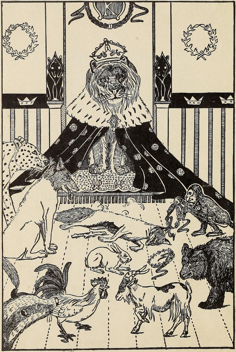 #vintage illustration #anthropomorphism #animals #before and after #animal fight #illustration #lion king