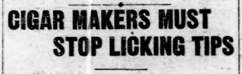 "Cigar makers must stop licking tips."  From the Duluth Herald, 1914.