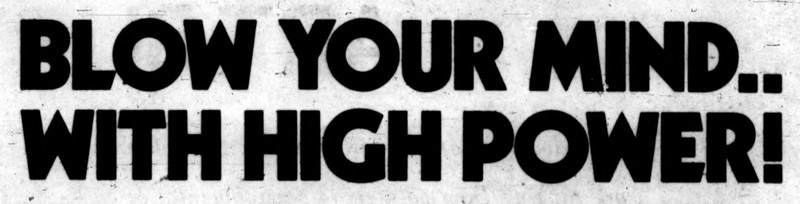 "Blow your mind .. with high power!"  From the UCLA Daily Bruin, 1974.