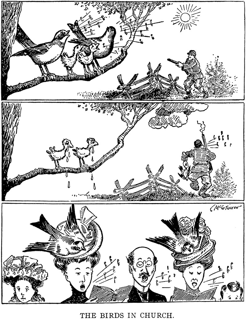 "The birds in church."  From the Massachusetts Society for the Prevention of Cruelty to Animals' Our Dumb Animals, 1908.