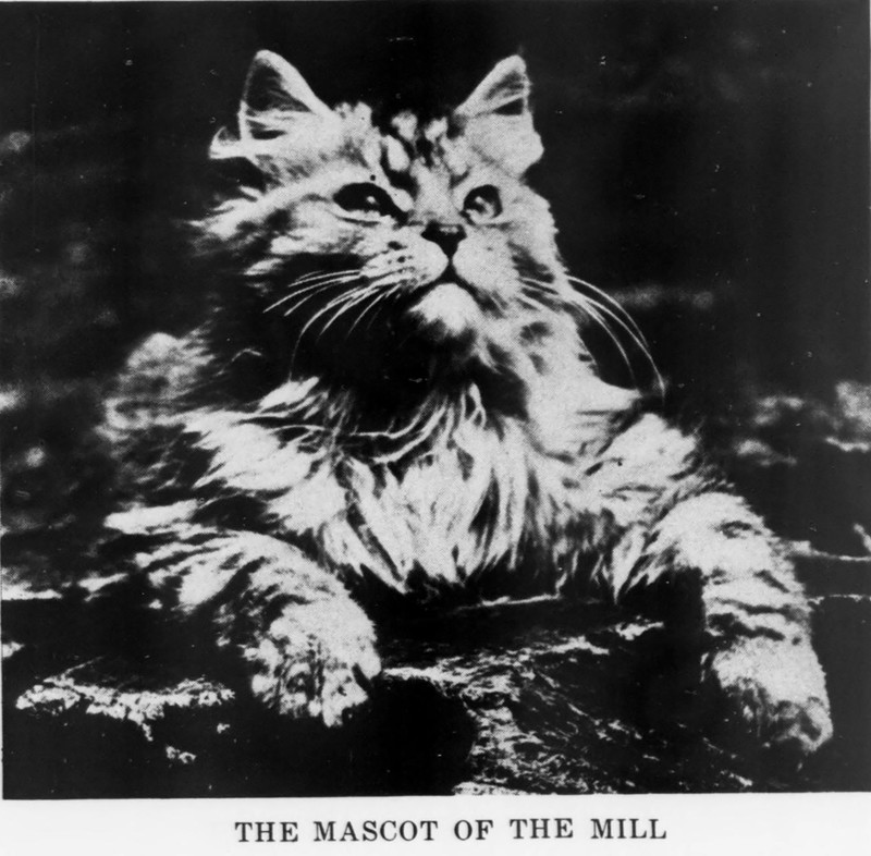 "The mascot of the mill."  From the Massachusetts Society for the Prevention of Cruelty to Animals' Our Dumb Animals, 1937.