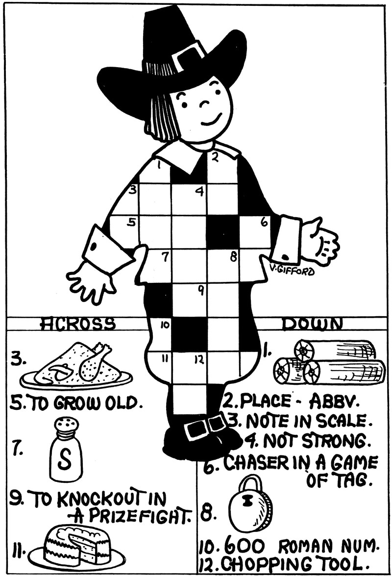 #vintage illustration #thanksgiving #1960s #illustration #crossword puzzle