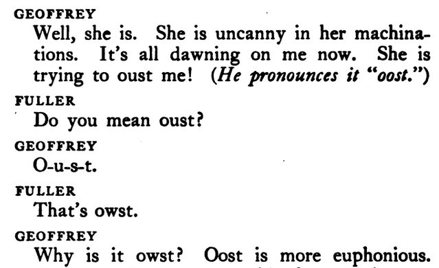 [More snippets attached. Btw, after the initial discussion about "oost" vs. "oust," Geoffrey continues to rant on about "oost"-ing through much of the script.]