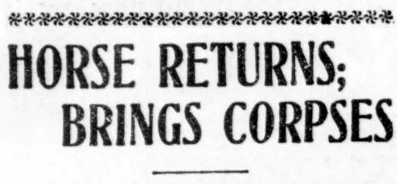 "Horse returns; brings corpses."  From the Duluth Evening Herald, 1908.