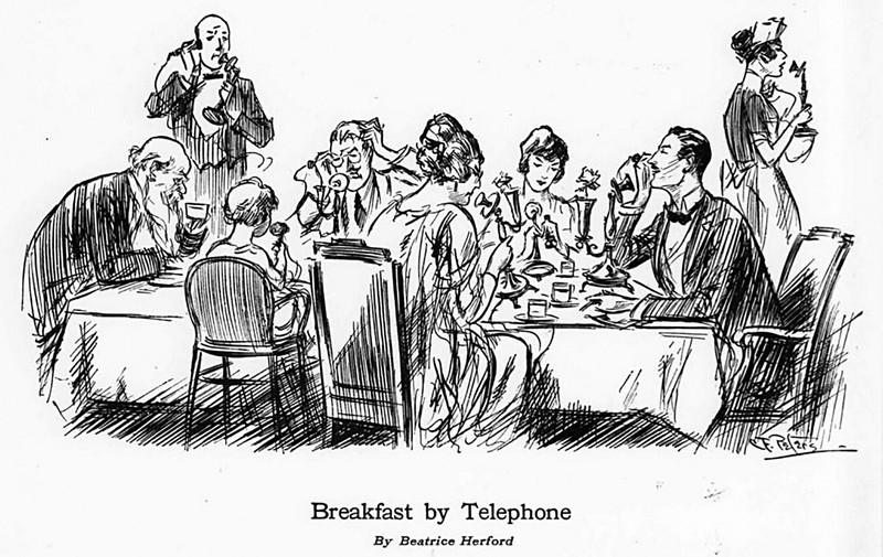 [Many more snippets attached. Note that the prescient illustration of a roomful of people who are all on the phone was 1921 conception of life at the future date of 1925!]