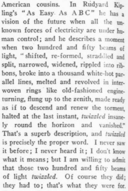 Its story has just about the same breadth as a geometrical line, and it takes considerably longer to reach a given point. [ditto]