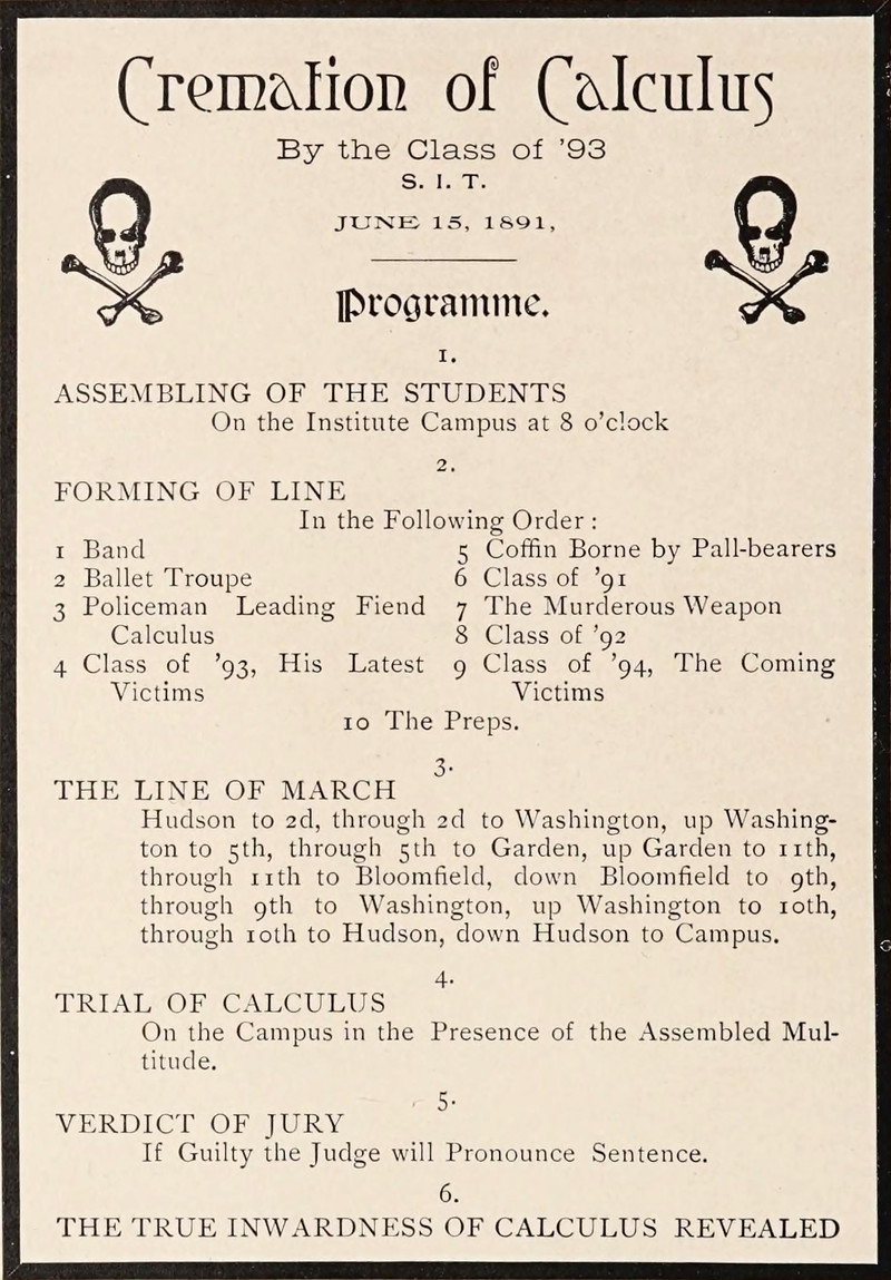 "True inwardness of calculus revealed."  From Stevens Institute of Technology's 1892 yearbook.
