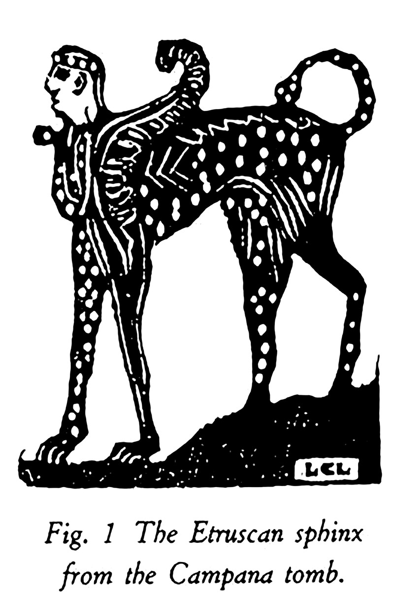 This Etruscan sphinx is discussed in The Bestiary of Christ by Louis Charbonneau-Lassay, 1940.