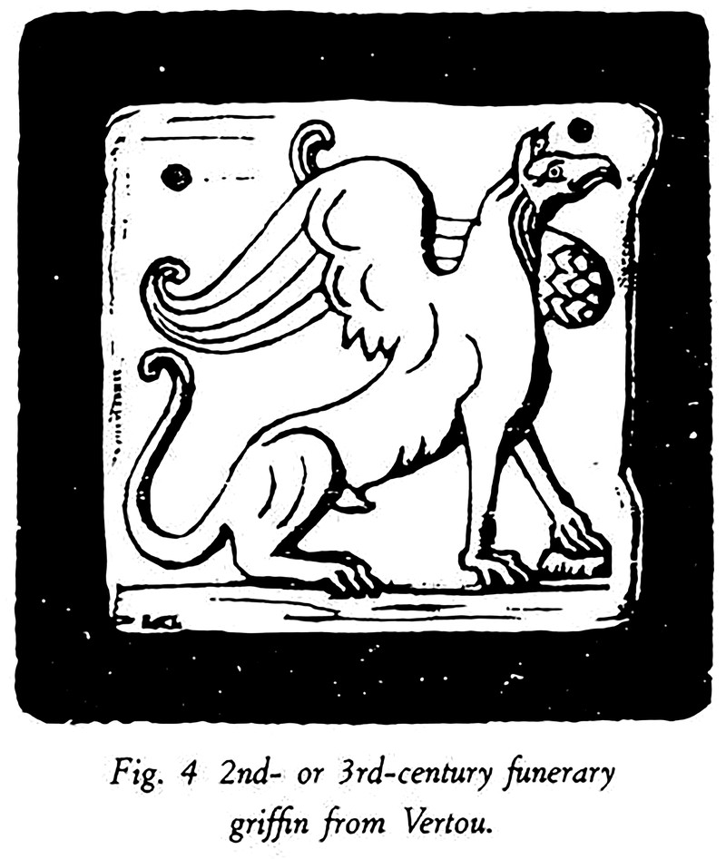Today's funerary griffin is discussed in The Bestiary of Christ by Louis Charbonneau-Lassay, 1940.