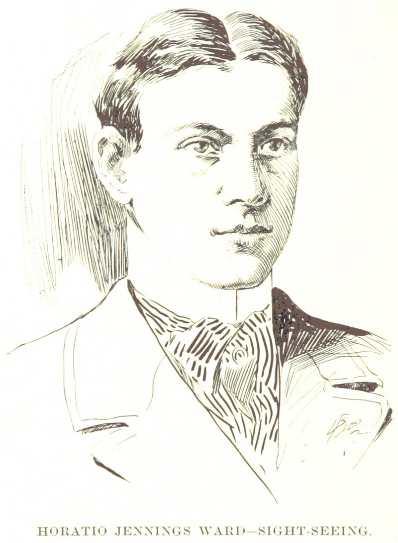 We've looked at tens of thousands of vintage illustrations in the course of our research, but this is the very first portrait we've encountered that identifies what the portrayed is doing! The caption puts this portrait ... ahem ... head-and-shoulders above the rest! Luckily, we can mentally search and replace all the captions we've seen to date with "sight-seeing." So very much of what our beleaguered eyes have seen makes better sense now! Whew!