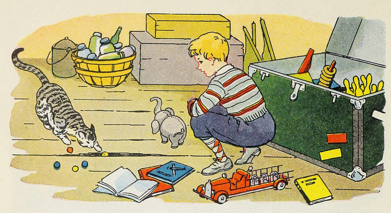 #vintage illustration #cat #toy chest #toys #illustration
