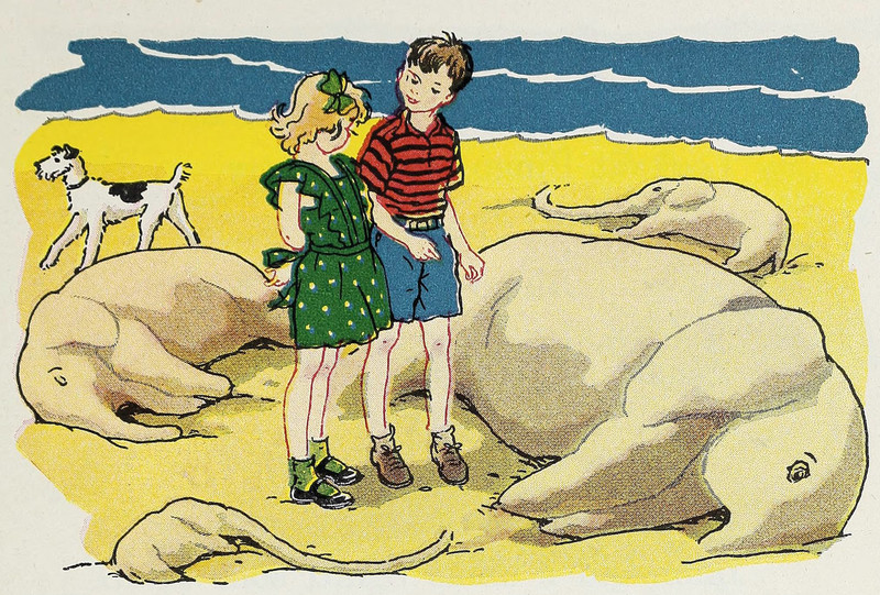 Today's resting sand elephants.  From Number Stories Book 2 by Studebaker, Findley, Knight & Gray, 1942.