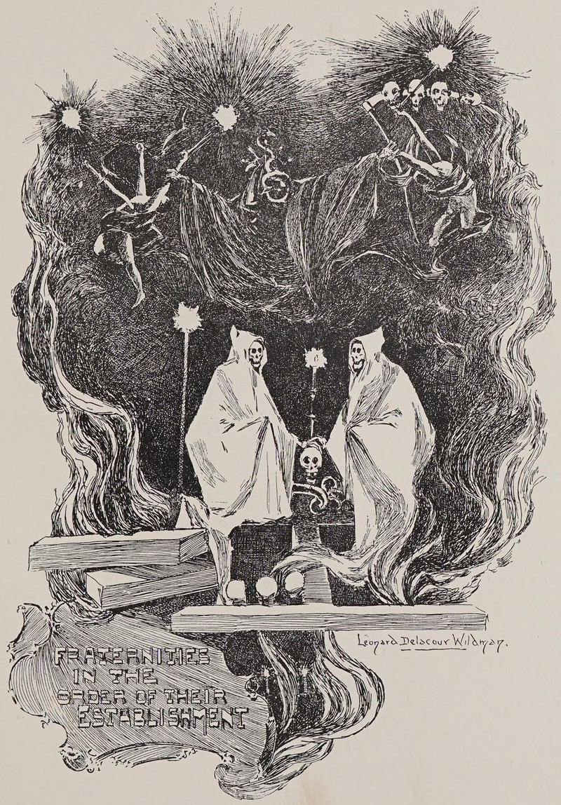 #vintage illustration #skull face #occult #vintage yearbook #yearbook #secret society #hooded figure #illustration