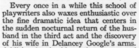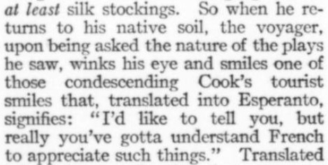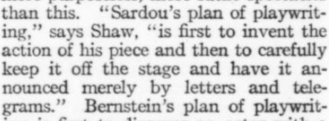 ***Monday, the somethingth. [letter heading]***the shiny seat of [the play's] theme [Nathan]***Blanche Shoemaker Wagstaff [A real playwright's name: another Wagstaff! Could this be a relation of Gribble's?]***[Title of actual Paris revues, per Nathan]Pourvu Qu'on RigoleEnfinTais-Toi! Tu M'Affoles!Ce Que Je Peux Rire***[More snippets attached. The John Kendrick Bangs bits are from an exhaustingly in-depth "Who's Who in Wagner" series (à la "the" Who's Who) that ran for at least three lengthy installments.]
