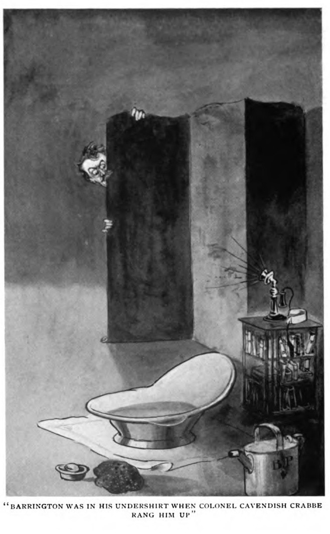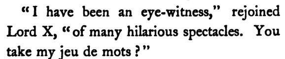 [Barmecide: "One who offers imaginary food or illusory benefits." --OED. It seems maybe to derive from an Arabian Nights tale.]***She was a leader of the artistic set, who call one another by their Christian names the first time they meet, and usually correspond on future occasions only through their solicitors.***[Some offstage character names]Lady MountgloomsburyLady Heliotrope LacklandMr. Selanger Slap-Cabbage ("he spelt it to her")[And one corporation]The Patent Banana Peeling Capsule Company, Ltd.[There's also an episode in which someone loses his job in a government ministry because he unconsciously drafted an important official document in such as way that the prose could be read as rhymed verse.][More snippets, and one stand-out illustration, attached. Snippet 02 is from a scene in which society-page editors are shown using Mad-Libs-style templates to plug in whichever gentry they want to repay for buying subscriptions. (And when it comes to describing the featured ladies' outfits, the editors just make stuff up from, as it were, whole cloth.)]