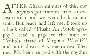 Here's a precursor to Edward Albee's title Who's Afraid of Virginia Woolf? (1962), from Frank Sullivan in a 1933 issue of The New Yorker. Sullivan refers to reading a page "to the tune of 'Who's afraid of Virginia Woolf?'"