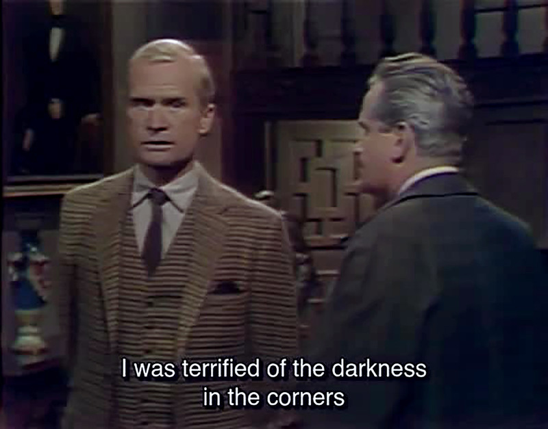 "I was terrified of the darkness in the corners."  From Dark Shadows episode 334.