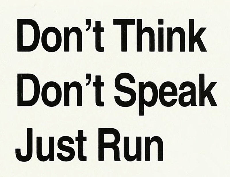 "Don't think.  Don't speak.  Just run."  From Swarthmore College's 1996 yearbook.