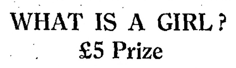 "What is a girl?  £5 prize."  From The Children's Newspaper, 1930.
