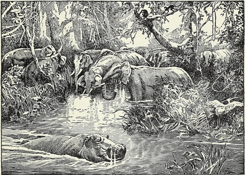 #vintage illustration #elephant #hippo #1930s #illustration #prehistoric #stone age