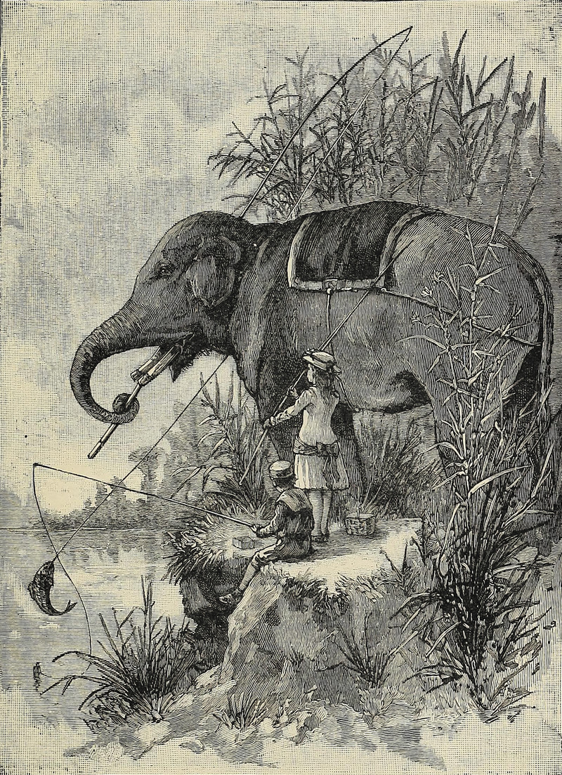 #vintage illustration #elephant #fishing #illustration #1880s