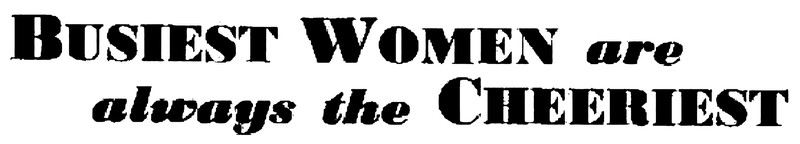 "Busiest women are always the cheeriest."  From The Australian Women's Weekly, 1939.