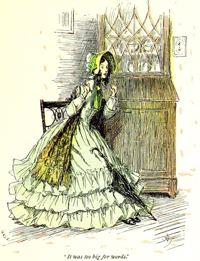 An illustration from Cranford by Elizabeth Cleghorn Gaskell (1898).  The caption reads: "It was too big for words."