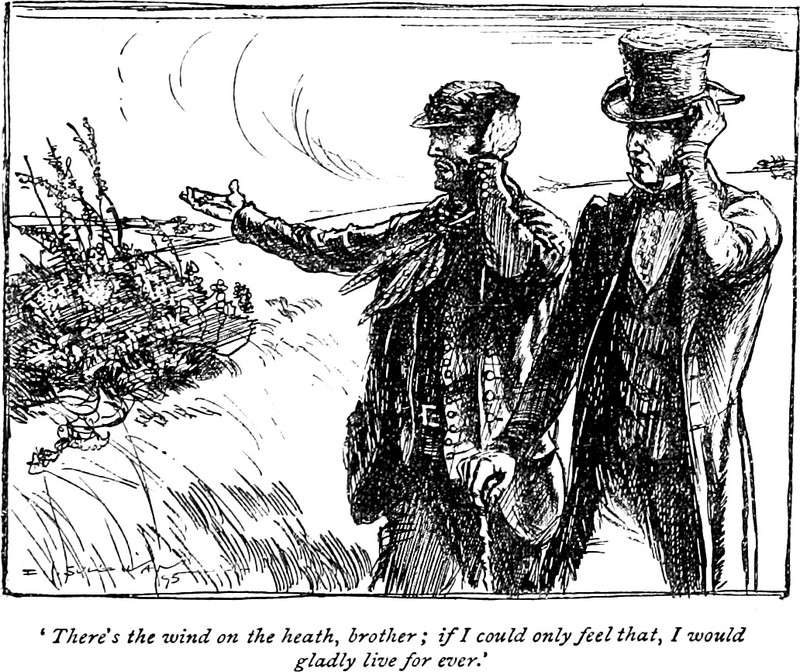 An illustration from Lavengro by Augustine Birrell (1896). The caption reads: "There's the wind on the heath, brother; if I could only feel that, I would gladly live for ever."