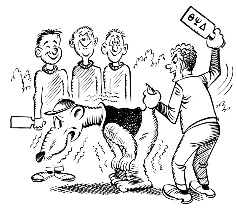 #vintage illustration #anthropomorphism #vintage yearbook #yearbook #spanking #1960s #illustration #paddling
