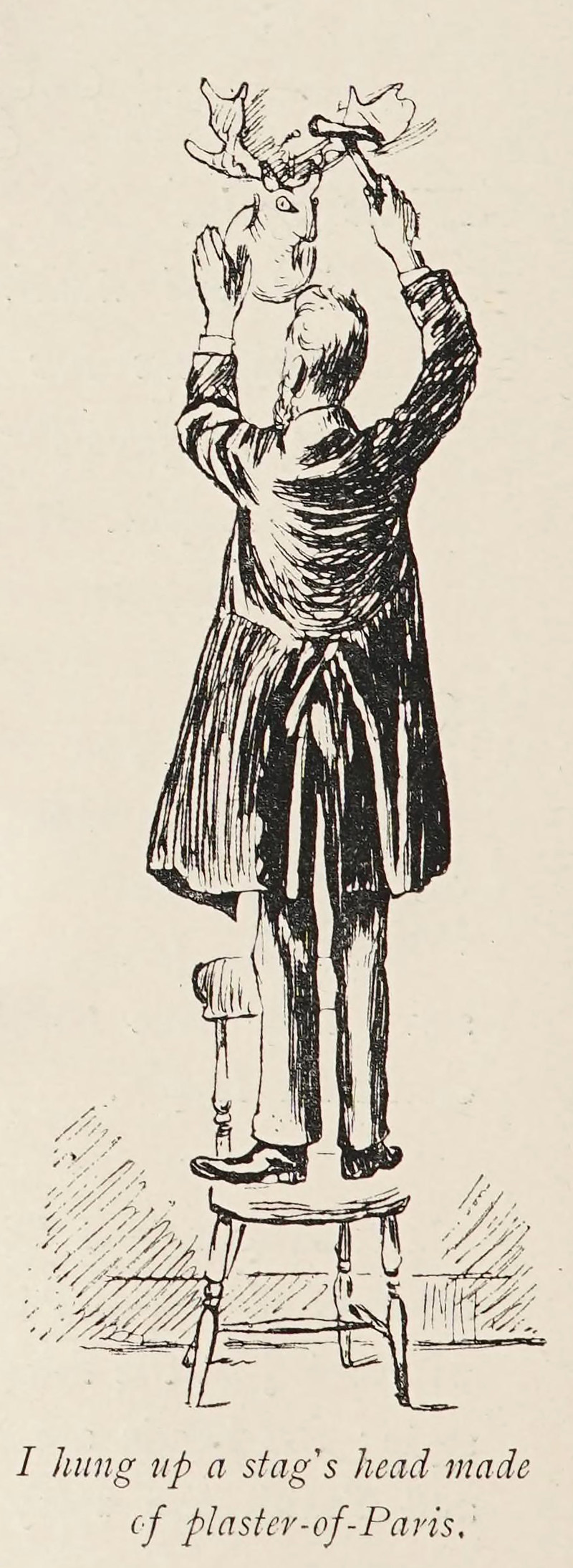 "I hung up a stag's head made of plaster-of-Paris."  From The Diary of a Nobody by George Grossmith & Weedon Grossmith, 1892.